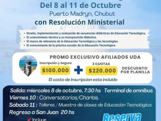 La Unión Docentes Argentinos- UDA Seccional San Juan te lleva al 18° Encuentro Provincial de Educación Tecnológica. Modalidad Presencial – Puerto Madryn- Chubut: Viernes 10 […]