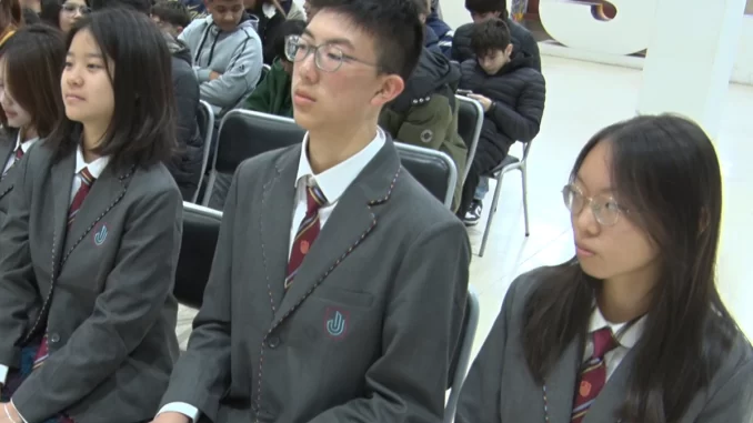 Prolijamente en primera fila, mucho más relajados que el día que llegaron, las y los estudiantes de China asistieron a una despedida en honor a ellos, tanto de parte de las autoridades como de sus pares pertenecientes a los tres institutos preuniversitarios de la UNSJ.