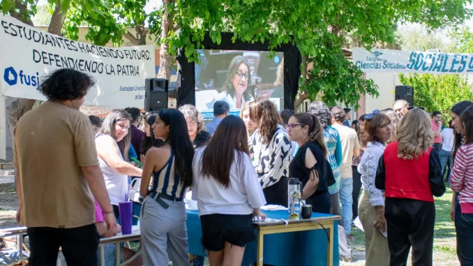 El jueves 2 de octubre, desde el mediodía, se llevó a cabo en el Espacio Verde de la Facultad de Ciencias Sociales (FACSO) de la Universidad Nacional de San Juan (UNSJ) un festival en defensa de la educación pública, organizado por el Espacio Estudiantil Ideas y con el acompañamiento de docentes, estudiantes, gremios y organizaciones sociales. El evento incluyó bandas en vivo, un remerazo y la transmisión en vivo de la sesión del Senado de la Nación, en la que se debatía la ratificación de la ley de Financiamiento Universitario.