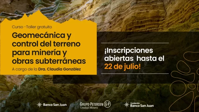 En el marco del programa Desarrollo de Comunidades de Fundación Banco San Juan (FBSJ), y en conjunto con la Unidad Minera de Grupo Petersen, la Universidad Nacional de San Juan (UNSJ), el Ministerio de Educación y el Ministerio de Minería, se llevará a cabo una nueva edición del curso-taller gratuito “Geomecánica y control de terrenos para minería y obras subterráneas”, dictado por la Dra. Claudia González, sanjuanina radicada en Toronto, Canadá, y especialista en Mecánica de Rocas y Geomecánica, con una amplia trayectoria en industrias de primer nivel.