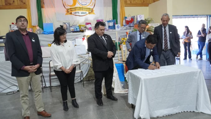 En el marco del 50° aniversario de la Escuela Agroindustrial Mons. Dr. Juan Antonio Videla Cuello de Jáchal, se llevó a cabo la firma de un Acta Acuerdo de Articulación con la Facultad de Ingeniería de la Universidad Nacional de San Juan (FI – UNSJ). Este acuerdo se enmarca en el Programa de Articulación que la FI viene desarrollando desde el año 2022 con instituciones de educación secundaria de la provincia, con el objetivo de fortalecer la formación de los y las estudiantes que aspiran a ingresar al Ciclo Básico de la carrera de Ingeniería.