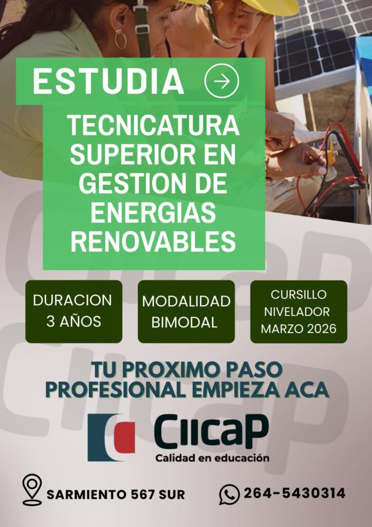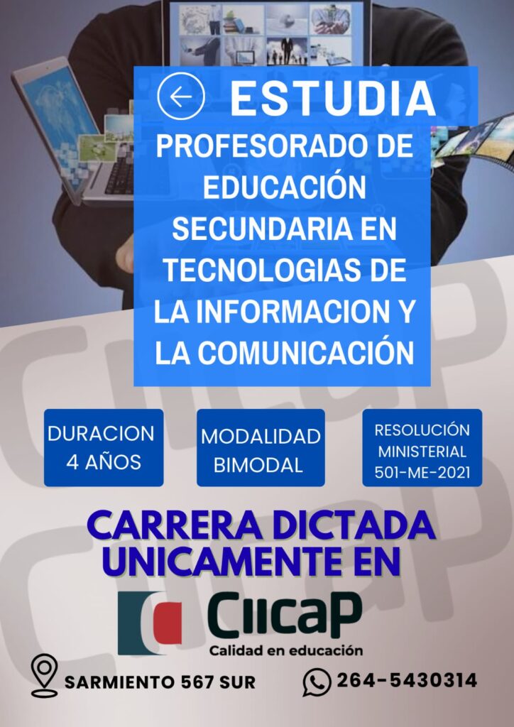 El Instituto CIICAP tiene las inscripciones para el Profesorado de Educación Secundaria en Tecnologías de la Información y la Comunicación y la  Tecnicatura Superior en Gestión de Energías Renovables.