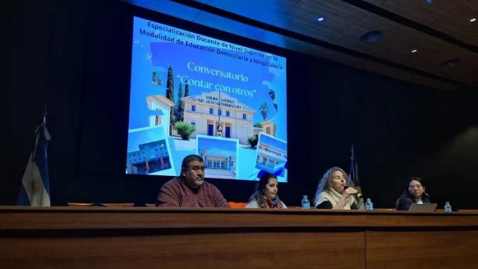 La especialización docente en Educación Domiciliaria y Hospitalaria, que lleva a cabo el Ministerio de Educación de la provincia, y que es la única que se desarrolla en el país, concretó un nuevo encuentro presencial. En este caso se trató de un conversatorio entre profesionales de equipos interdisciplinarios de los hospitales Rawson, Marcial Quiroga y San Roque (Jáchal), que transmitieron sus experiencias a los cursantes de la especialización. La actividad se hizo en el auditorio Eloy Camus y contó con la presencia de la secretaria de Educación, Mariela Lueje.