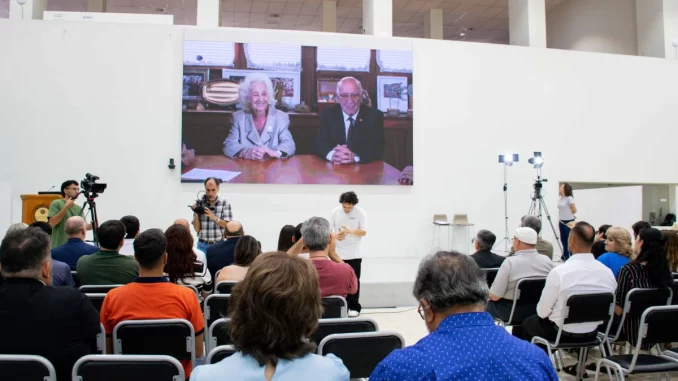 El acto se desarrolló en la ciudad de Buenos Aires, en la sede de esa institución forjadora de memoria e identidad, que ya recuperó 140 nietos y nietas. Allí estuvieron presentes autoridades de la UNSJ, como el rector Tadeo Berenguer; la secretaria de Extensión Universitaria, Laura Garcés; el secretario Administrativo Financiero, Ricardo Coca; la secretaria de Comunicación, Mariela Miranda, y el decano de la Facultad de Ciencias Sociales (FACSO), Marcelo Lucero, encargado de leer las palabras de laudatio (discurso de elogio) a Estela. También fue parte del acto el sanjuanino Carlos Goya Martínez Aranda, nieto recuperado número 92.