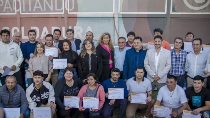 En Sarmiento, 28 personas recibieron su certificado de soldadores y casi la mitad ya fue contratada por empresas locales. Este año habrá dos Aulas Talleres Móviles en ese departamento.
