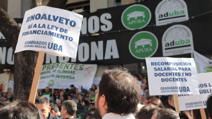 La medida de fuerza de 24 horas fue convocada por la Federación de las Universidades Nacionales (FEDUN), CTERA, FAGUDT, CONADU, CONADU histórica, FATUN y UDA, en rechazo de la iniciativa que lleva la firma del mandatario y se conoció este miércoles. En ese sentido, la oposición estudia convocar a una sesión especial el próximo miércoles para derribar el proyecto.