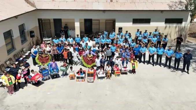 La actividad se desarrolló en la Escuela María Curie, en el departamento 25 de Mayo, donde la Policía de San Juan realizó una jornada con alumnos y docentes del nivel inicial y primario. Participaron distintas áreas policiales y se entregaron elementos de limpieza, útiles escolares y un kit deportivo destinado a fortalecer las actividades escolares.