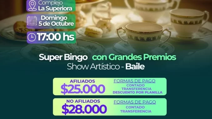 Será una tarde llena de alegría, diseñada para el disfrute de todos los asistentes. El evento contará con un Super Bingo con grandes premios, un imperdible show artístico y, para cerrar la jornada a pura diversión, un final bailable. Este encuentro busca brindar un momento de esparcimiento y unión para toda la familia.